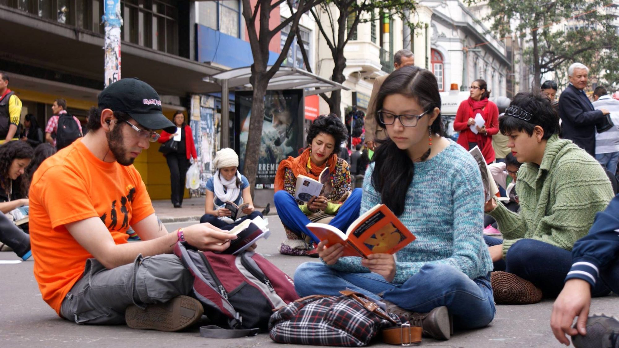 - Ir con ella al punto de encuentro (En Bogotá Cra. 7ma. entre calles 22 y 23 a las 3:00 p.m.), buscar un lugar para sentarse en medio de la calle y entregarse a la lectura silenciosa durante una hora.