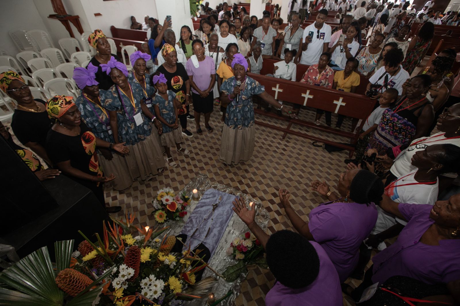 “Son oraciones cantadas a Dios y a la Virgen. Para la tumba se le pone el santo del que la persona fue devoto en vida, colocamos la mariposa, el Cristo, cinco velas: una para el Cristo y cuatro a los lados y flores, que antes eran naturales, pero ahora son artificiales”. Dijo la sabedora y portadora de esta manifestación, Cruz Ney Mosquera.