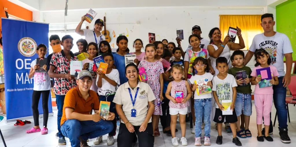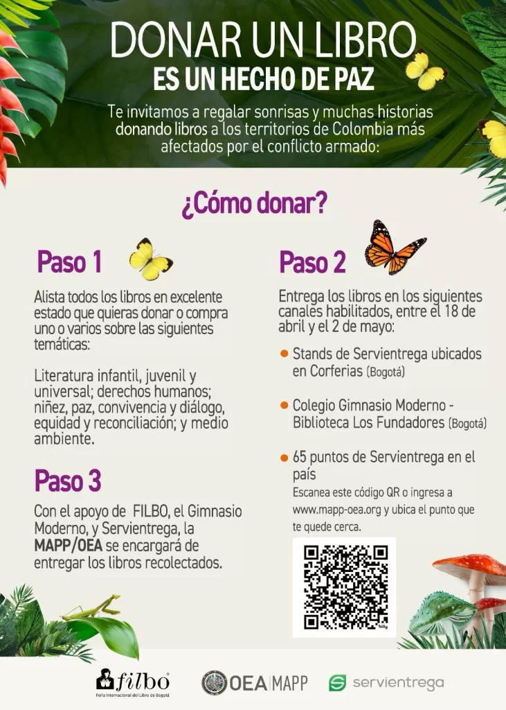 La campaña Donar un libro es un Hecho de Paz, liderada por la Misión de Apoyo al Proceso de Paz en Colombia (MAPP/OEA) y la Cámara Colombiana del Libro, llega a su quinta edición este 2024 durante la Feria Internacional del Libro de Bogotá- FILBo.