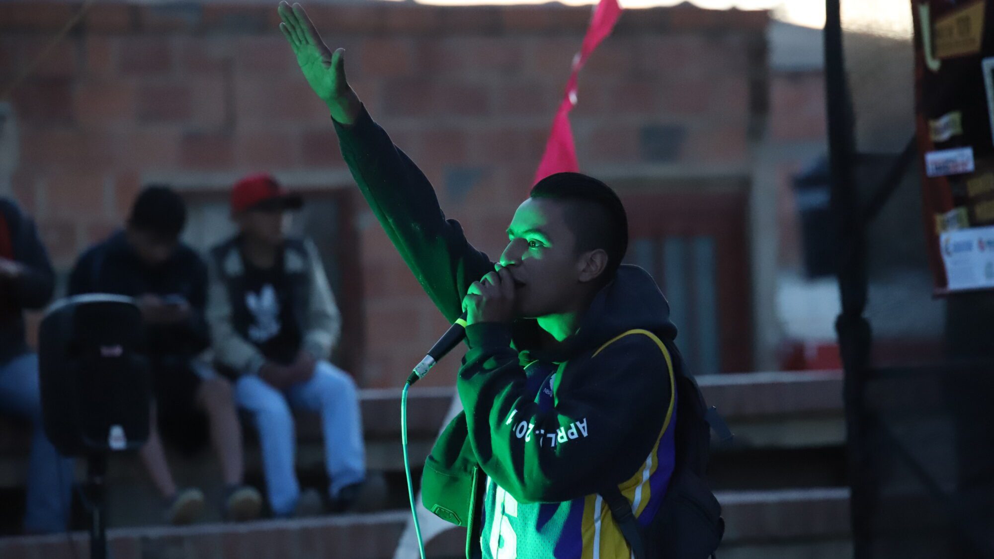 En la esquina muy cerca a los baños se encontraban los MCS, también conocidos como raperos, quienes se retaban entre sí en un duelo de rimas improvisadas. Me llamó mucho la atención así que decidí acercarme con la sorpresa de que nuevamente mis grandes anteojos y brackets salían a relucir, esta vez no me sonroje tan solo ponía atención y movía la cabeza de arriba abajo. “Fercho”, uno de los raperos con más trayectoria me incitó a que me uniera en el ruedo del estilo libre (Freestyle), me dio algunas pautas, pero no logré acoplarme a la perfección como ellos lo hacían, en ese instante no se me ocurría nada, mi risa tonta camuflaba la vergüenza que podría sentir si me decidía rimar, rompí ese momento con un – No se me ocurre nada, yo los escucho-…
