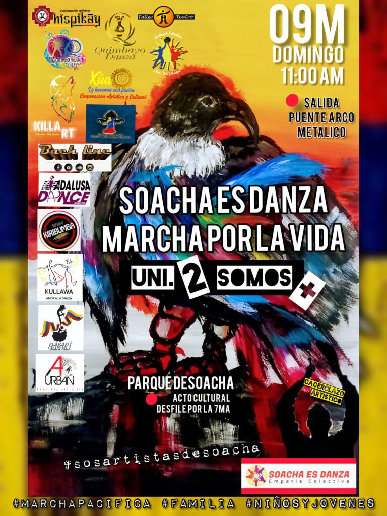 Desde el colectivo artístico Soacha es Danza “Empatía Colectiva”, varias escuelas de formación en danza como: Agrupación Folklórica Sentimiento Colombiano, Kirikumba, Fundación Artística y Cultural Sol y Luna, Adalusa; Killart, Tradición Colombiana, Bakari Danza, Quimbayo Danzas y la Agrupación Artística Xua, entre otros, reunieron a sus integrantes para exigir por medio de demostraciones dancísticas oportunidades educativas, laborales, así como justicia por lo que ellos denominan “masacres de jóvenes”.