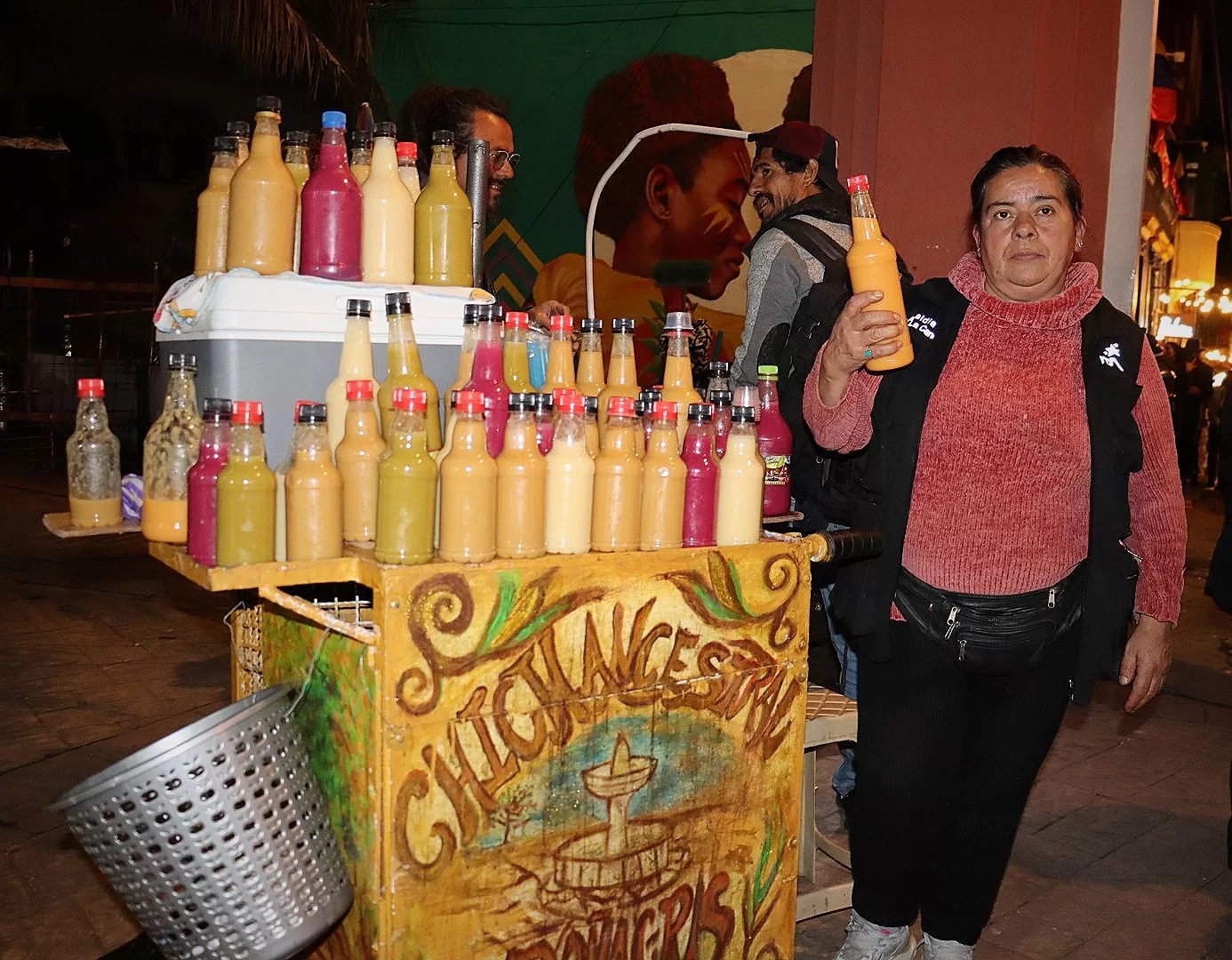 Doña María Mercedes Linares nos recomienda su chicha casera ya que es el único punto autorizado por la alcaldía , lleva más de 19 años allí, su chicha se caracteriza por sabores únicos y fermentados con un clásico toque rolo. «Una sabrosa chicha que rescata nuestras tradiciones en la ciudad»