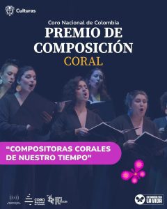 La compositora ganadora recibirá un estímulo económico de 10 millones de pesos m/cte y su obra será estrenada por el Coro Nacional de Colombia dentro de la programación 2024- 2025 de la agrupación. Mayores informes.