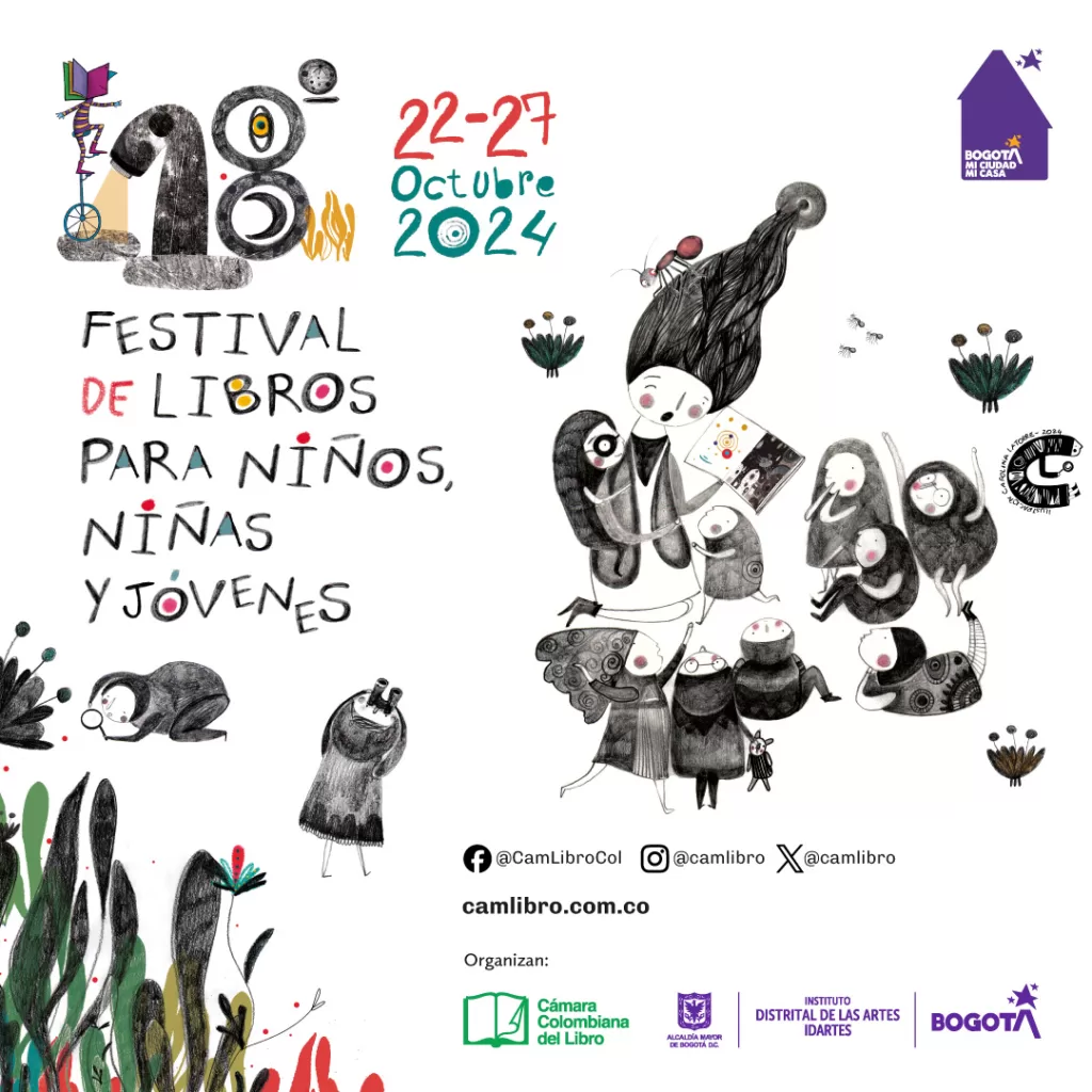 Del 22 al 27 de octubre se llevará a cabo el Festival de Libros para Niños, Niñas y Jóvenes, organizado por la Cámara Colombiana del Libro y el Instituto Distrital de las Artes, Idartes. En su 18ª edición, el Festival contará con más de 50 actividades en librerías, colegios y otros espacios culturales, con un enfoque especial en el desarrollo de proyectos comunitarios de escritura y oralidad en Bogotá.