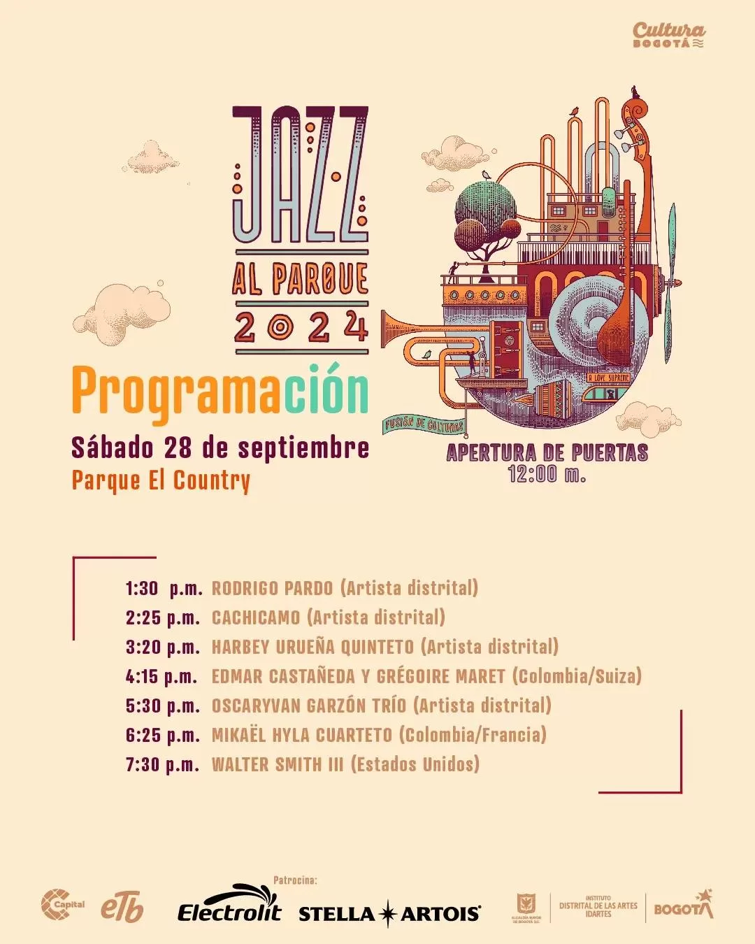 La escena local también estará muy bien representada en Jazz al Parque 2024. Artistas como Lalo Cortés y su propuesta de neosoul latinoamericano, el Oscaryvan Garzón Trío, y el Jorge Cabezas Quinteto llevarán la diversidad musical de Bogotá al escenario. Otros artistas distritales destacados incluyen a Cachicamo que combina el jazz con música latinoamericana y minimalista, explorando temas como la memoria y Camilo Ibarra Trío, trío que entrelaza la música de su tierra con las expresiones más vanguardistas del jazz.