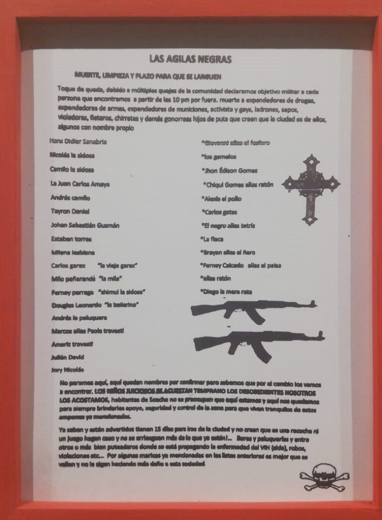 Esto le permitió junto al antropólogo Sebastián Ramírez emprender una investigación que contó con el acompañamiento de algunos líderes sociales y activistas de la comunidad LGBTIQ del municipio, víctimas de amenazas mediante panfletos que exigían su exterminio.