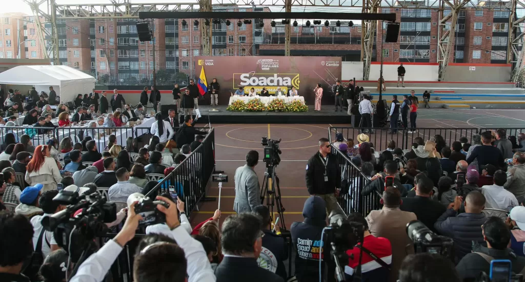 En el Centro Cívico ubicado en la comuna 5 de Soacha, Cundinamarca, se llevó a cabo el encuentro de Gobierno con el Pueblo del presidente Gustavo Petro, al que asistieron el gabinete, el alcalde de Soacha, Víctor Julián Sánchez, y el gobernador de Cundinamarca, Jorge Rey; y con la importante participación de los asistentes quienes tuvieron la palabra.