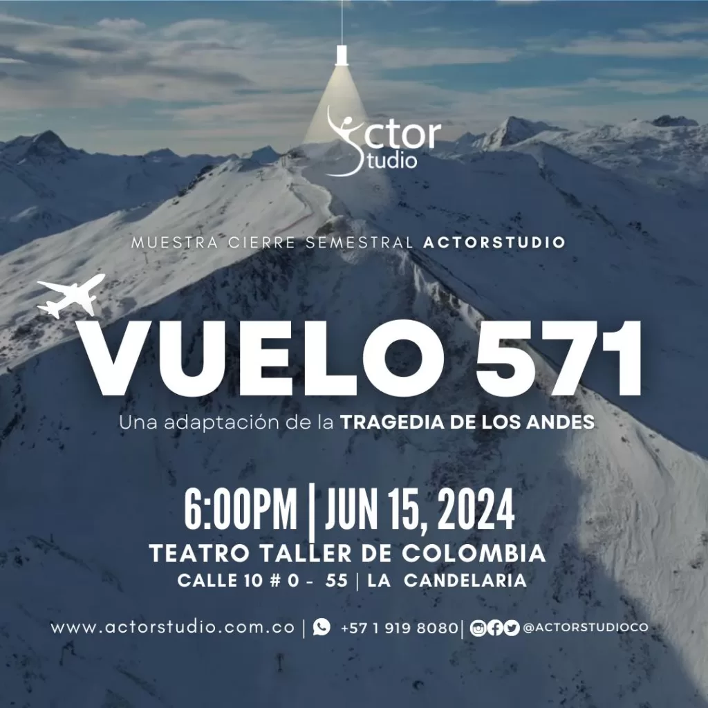 «Vuelo 571» es una obra creada e interpretada por los estudiantes que egresan de ActorStudio y se llevará a cabo en el «Teatro Taller de Colombia» el 15 de junio de 2024, a las 6:00 pm.
